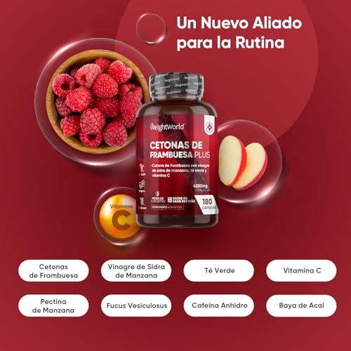 Cetonas de Frambuesa Plus 4280mg, 180 Cápsulas Veganas, 3 Meses de Suministro – Con Vinagre de Sidra de Manzana, Té Verde, Baya de Acai en Polvo, Pectina de Manzana, Vitamina C y Más, Sin Gluten