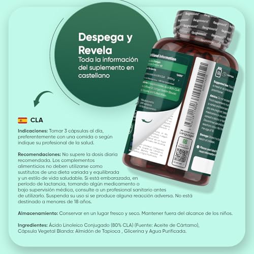 Suplemento del Aceite de Cártamo para 2 Meses – El Ácido Linoleico Conjugado actúa como una chispa diaria que marca la diferencia en la rutina, siendo el apoyo ideal tanto como suplemento deportivo como para hombres y mujeres con un estilo de vida activo. Cada bote contiene 180 cápsulas blandas, equivalentes a 2 meses de suministro continuo.