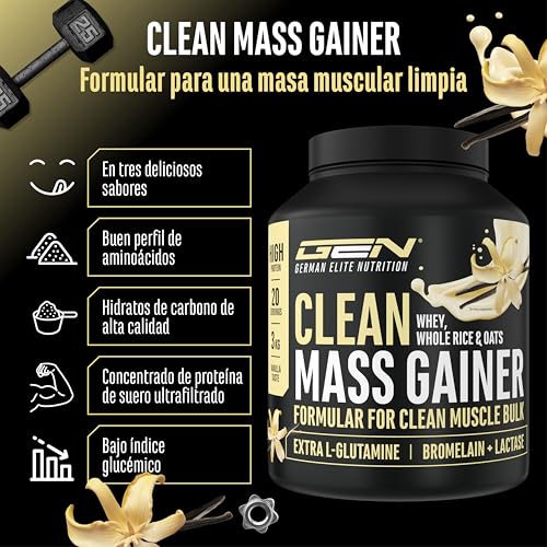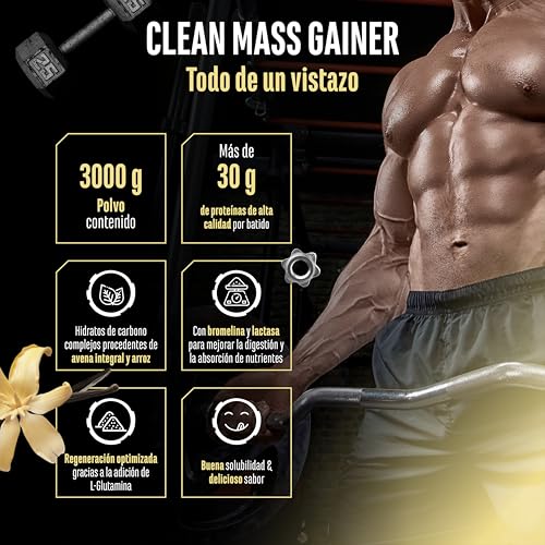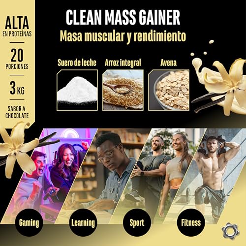 Clean Weight Gainer – 3 kg – Con carbohidratos complejos y proteínas – Ideal para la fase de masa – Polvo para aumentar masa y peso – Sabor Vainilla