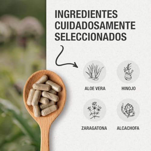 🌼DETOX DEPURATIVO HIGADO Y COLON: Nuestra fórmula natural a base de alcachofa, Aloe vera, Hinojo y Zaragatona, en formato cápsulas, te ayuda a depurar y a mantener la función hepática en estado óptimo. También te ayudará a eliminar las toxinas acumuladas en el colon, promoviendo así una mejor salud intestinal y regularidad digestiva.
