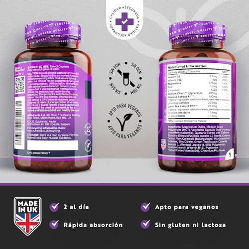 ✔︎ EL SUPLEMENTO PERFECTO PARA SU DIETA CETOGÉNICA: nuestras cápsulas Keto Complex Max se han formulado con ingredientes de calidad superior seleccionados cuidadosamente, entre otros, aceite MCT, extracto de té verde, cafeína y vitaminas y minerales esenciales que le ayudarán a la hora de seguir un plan alimentario con un alto contenido en grasas y bajo en hidratos de carbono.