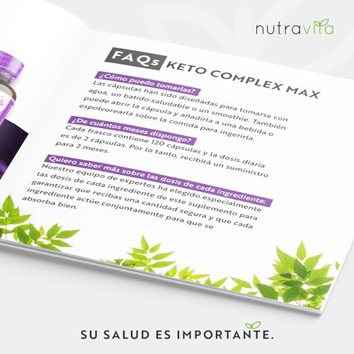 Keto Complex Max – Suministro para 2 mes (120 cápsulas) – Píldoras Dietéticas Keto para Hombres y Mujeres – MCT, té verde, vitaminas y minerales – fabricado por Nutravita