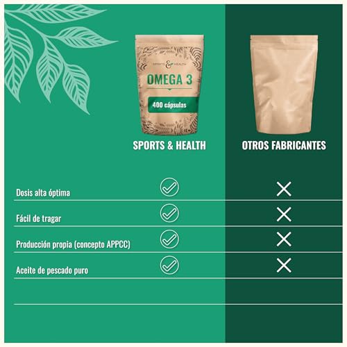 Sports & Health Cápsulas de Aceite de Pescado, Omega 3 capsulas – 400 cápsulas – 1000 mg de ácidos grasos Omega-3 por cápsula