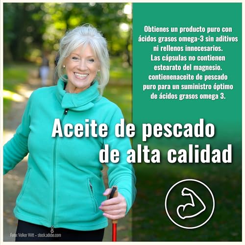 ACEITE DE PESCADO PURO: Obtienes un producto puro con ácidos grasos omega-3 sin aditivos ni rellenos innecesarios. Las cápsulas no contienen estearato del magnesio. contienen aceite de pescado puro para un suministro óptimo de ácidos grasos omega 3.