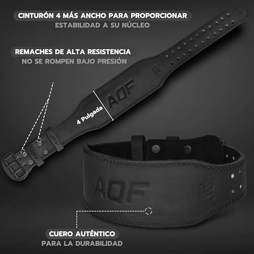 AQF Cinturon Lumbar Gimnasio, 4″ 6″ Amplio Cuero Acolchado Cinturón Gym, Powerlifting Belt Con Acero Rodillo Hebilla, Cinturon Halterofilia Para Levantamiento & Fitness