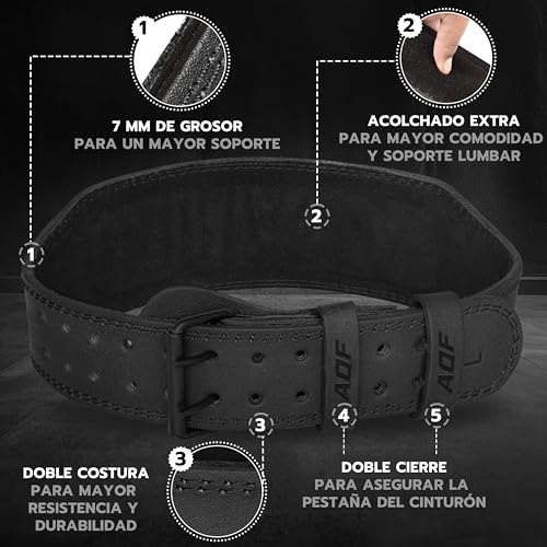 Construcción Varias Capas: Lifting Belt 7mm grosor tiene capa exterior cuero brillante resistente 2mm con capa intermedia 3mm serraje y capa inferior 2mm forro piel ante que suave y tiene icónico olor cuero. Gym Belt típico mide entre 6-7mm grosor. Sección media y más ancha Cinta Gimnasio también incorpora soporte lumbar acolchado espuma alta calidad 20mm que reduce tensión en los músculos espalda para levantamiento más seguro eficaz