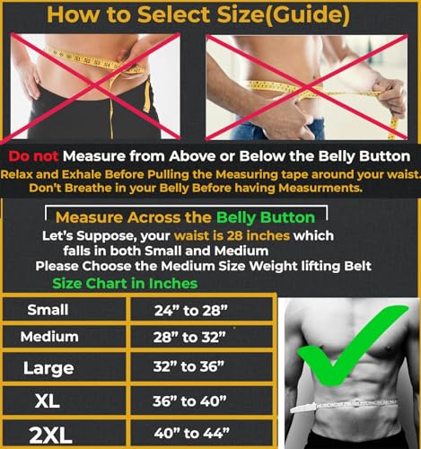 Evita confiar en el tamaño de la prenda; mide en el ombligo con una cinta adhesiva y consulta la tabla de tallas en la imagen. Nuestro cinturón de entrenamiento para el hogar y el gimnasio con 8 ajustes de agujeros, proporciona un ajuste a medida para la máxima comodidad y rendimiento durante los ejercicios de fitness.