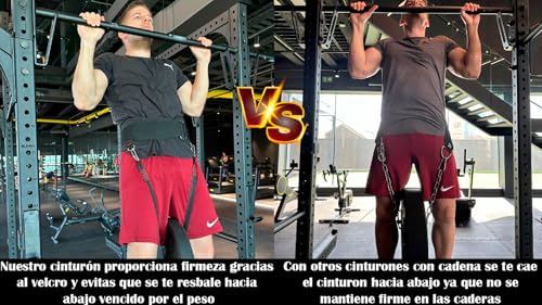 Cinturon Lastre Dominadas con 1 Cuerda de 100 cm y 2 Mosquetones | Talla Unica | Cinturon de Lastre Gimnasio va Acolchado y Aguanta 250Kg | Evita darte en tus Partes con la Cadena