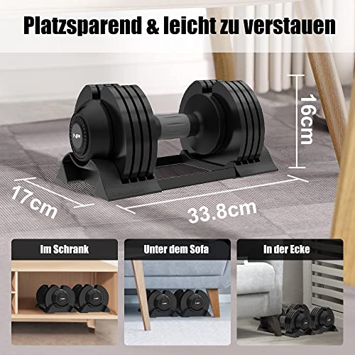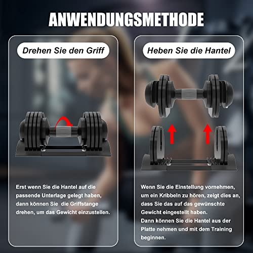 Peso cambiante de 1 S: diseño de manejo con una sola mano, cómodo para cambiar rápidamente el peso de las mancuernas durante el entrenamiento. Solo toma 1 segundo cambiar el peso de la mancuerna ajustable. La escala de peso visual y el diseño de mango de liberación rápida te permiten cambiar entre diferentes requisitos de peso fácil e intuitivamente, lo que te permite concentrarte en tu entrenamiento real.