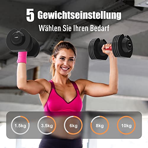 Reemplaza 5 mancuernas normales: las mancuernas ajustables combinan 5 pesos en un juego, disponibles en 1,5, 3,5, 6, 8 y 10 kg. Con un solo juego se pueden cubrir 5 opciones de peso para parejas. Desde pesos más ligeros hasta pesos más pesados, puede ajustar la intensidad de su entrenamiento y entrenar grupos musculares específicos para adaptarse a su nivel de rendimiento.