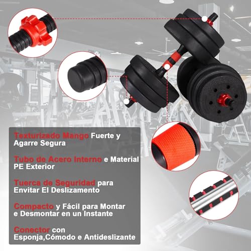 Juego de Mancuernas 2 en 1: Este set de mancuernas de alta calidad viene con una barra de pesas ajustable, las mancuernas se pueden transformar fácilmente en barras. Estas mancuernas están disponibles en una variedad de opciones de peso (10/15/20/30/40/50KG), ideal para principiantes y profesionales.