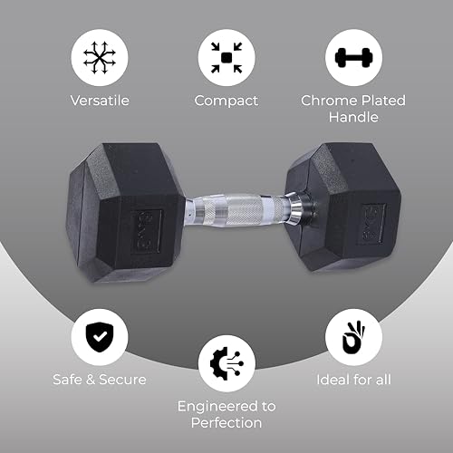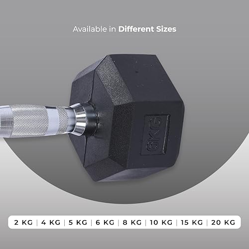 Achieve your fitness goals with the Endless Pair Hexagon Rubber Coated Dumbbells, designed for bodybuilding, weightlifting, and versatile training at home or in the gym. Made from durable iron with a sleek black rubber coating, these dumbbells offer a comfortable, secure grip and minimize noise and floor damage. The hexagonal shape prevents rolling, providing added stability during workouts, making them ideal for all types of strength and endurance training.