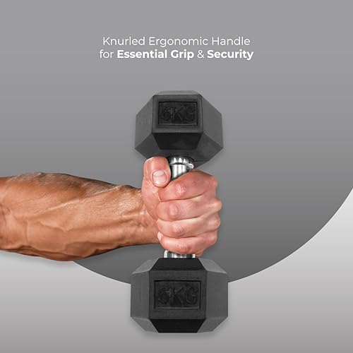 Endless Pair of 6 Kg (2 * 13 LB) Hexagon Rubber Coated Dumbbell | Black | Material: Iron and Rubber | Perfect for Bodybuilding, Fitness, Weight Lifting and Training at Home or Gym