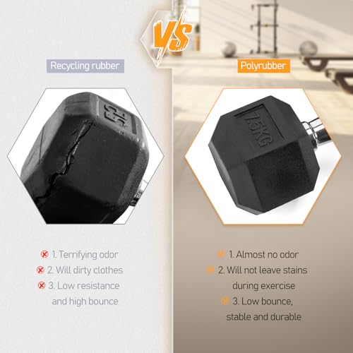 [Protección] Los extremos de las mancuernas están cubiertos con goma para evitar la oxidación del metal, y puede evitar hasta cierto punto aplastar tu suelo debido a caídas