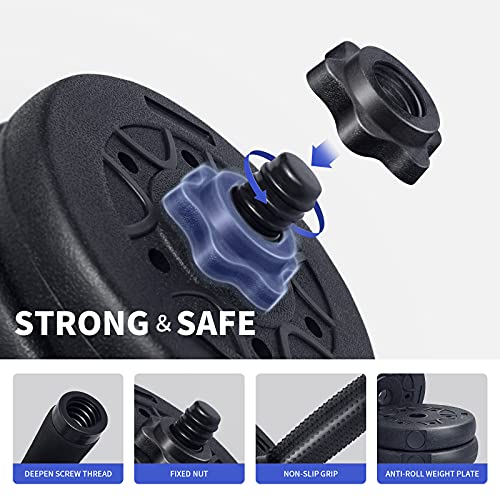💪【DISEÑO SEGURO Y ANTIDESLIZANTE】- Nuestro juego de mancuernas está equipado con un mango antideslizante, que crea un agarre cómodo y mejora en gran medida la fricción, asegurando un agarre firme, más seguro y más cómodo. Los cierres de seguridad de 4 estrellas evitan que las pesas rueden y las fijan a las mancuernas. Las almohadillas laterales antideslizantes evitan que las mancuernas rueden.