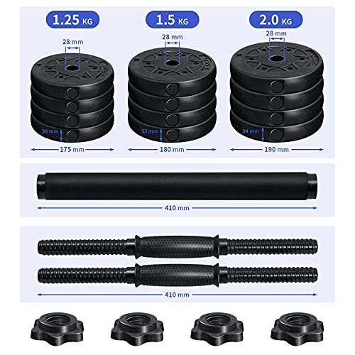 Juego de Mancuernas, Mancuernas Ajustables 2 en 1 con Pesas Barra y Discos, Mancuernas 20 kg para Culturismo, Aptitud, Halterofilia, Ejercicios de Gimnasio Doméstico