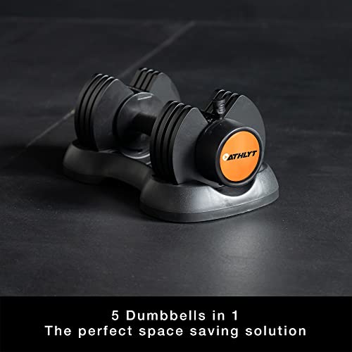 FÁCIL DE USAR Y ALMACENAR: nuestro juego de mancuernas ATHLYT es equivalente a cuatro mancuernas individuales. Su diseño compacto es ideal para ahorrar espacio en tu hogar. ¡Ahorra dinero y espacio con estas increíbles pesas ajustables!