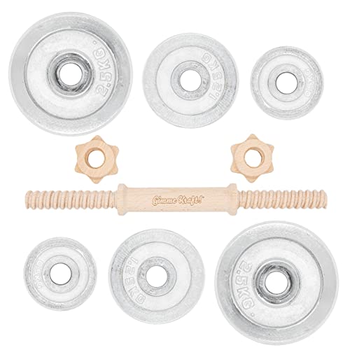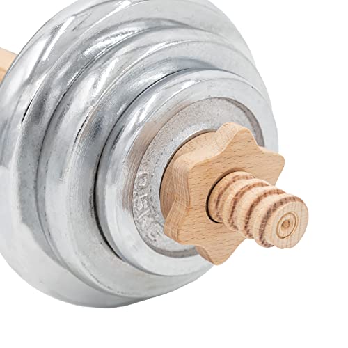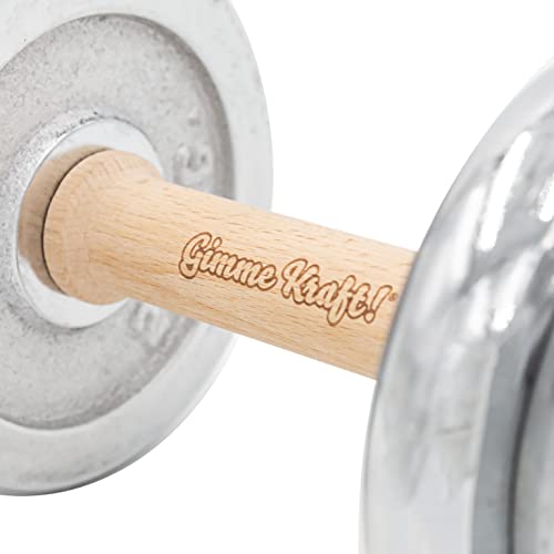 Mancuernas de madera y cromo con discos de 8,5 kg de peso