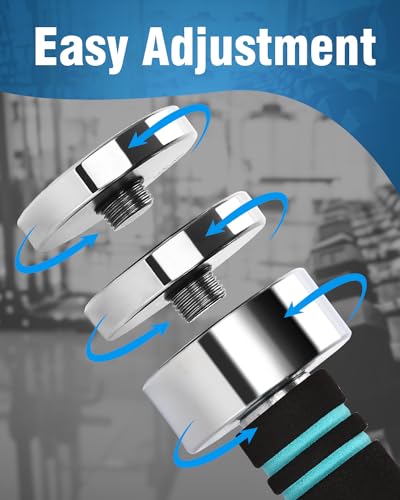 Mancuernas ajustables de 10 kg en juego de 2 – no es necesario varios juegos. Con 3 discos de peso diferentes en cada mancuerna, este innovador diseño permite ajustes rápidos de 8 posibilidades de peso entre 0,5 kg y 10 kg. ¡Personaliza tu entrenamiento para diferentes grupos musculares sin perder tiempo!