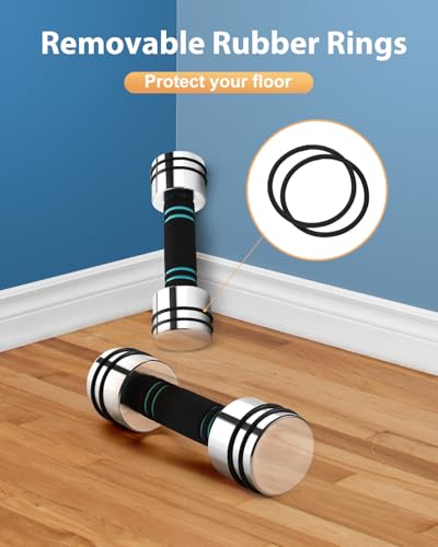 Sin olor: fabricadas exclusivamente en acero, estas mancuernas eliminan los olores desagradables de plástico. El diseño minimalista con acabado pulido añade un toque de estilo a tu habitación. Anillos de goma incluidos para proteger tus pisos.