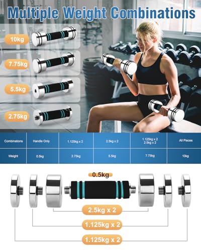 Pesas ajustables FEECCO – 10 kg x 2 mancuernas en juego de 2 unidades para gimnasio en casa