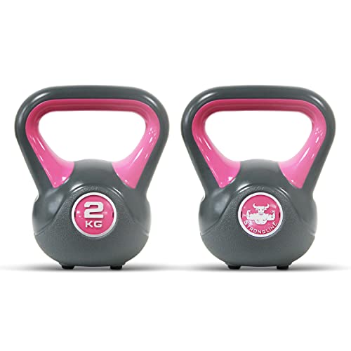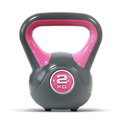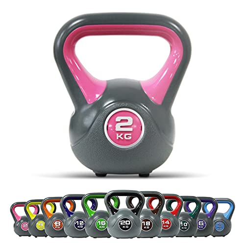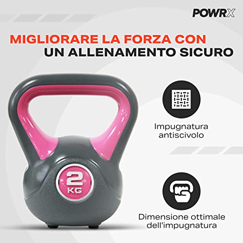 POWRX – Kettlebell de hormigón 2 – 20 kg – Pesa rusa con revestimiento de vinilo – Base con goma antideslizante + PDF workout (2 kg / Rosa)