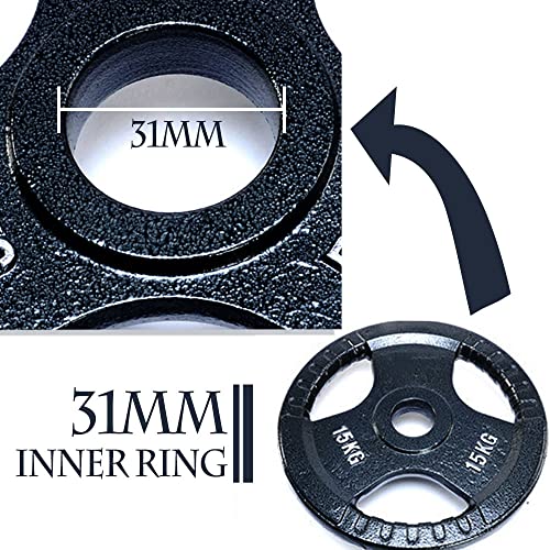 Orificio estándar: orificio de 31 mm, los pesos se ajustan perfectamente a todas las barras de pesas cortas, largas y rizadas con un diámetro de 30 mm