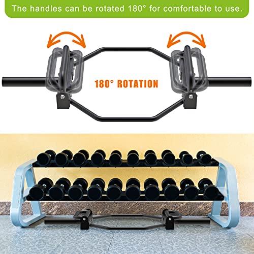 Kipika Barbell – Barra olímpica de trampa, barra hexagonal, barra de encogimiento, barra de peso muerto con soporte y asas plegables para levantamiento de pesas olímpico, encogimiento de hombros, sentadillas, manga de acero sólido de 2 pulgadas, capacidad de peso de 1000 libras