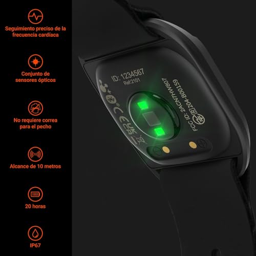 Aviso de frecuencia cardíaca – Equipado con motor vibratorio para notificaciones. Le notificará cuando su frecuencia cardíaca exceda el valor establecido a través de la aplicación Hearttool. Der standardmäßige maximale Herzfrequenzwert beträgt 180bpm.