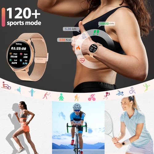 2025 Reloj Inteligente Mujer con ET/HRV/SIRI – 1.39″ TFT Smart watch con Llamadas Bluetooth, Monitor de Sueño, IP68, Fitness Tracker, Ciclo Menstrual, SpO2, Pulsómetro, para iOS & Android (Oro rosa)