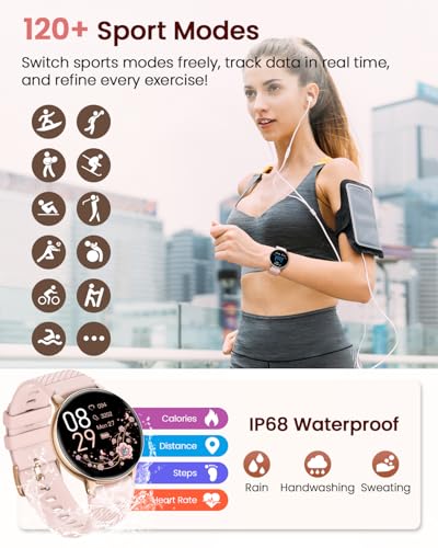 24H Protección de la Salud: el smartwatch mujer tiene un sensor inteligente recientemente actualizado que puede monitorear con precisión la frecuencia cardíaca, la presión arterial y el oxígeno en sangre las 24 horas, lo que lo ayuda a dominar sus datos de salud y administrar su condición física científicamente. La función de monitoreo del sueño puede analizar el sueño profundo, el sueño ligero y el tiempo de vigilia en detalle para ayudar a mejorar la calidad del sueño. Haz la vida más segura.
