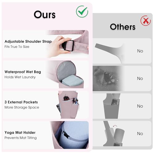 Bolsa Esterilla Yoga Funda Esterilla Yoga con Compartimento Húmedo Independiente Bolsillo Lateral con Cremallera y Bolsillo con Cordón para Botella de Agua y Correas Ajustables para los Hombros