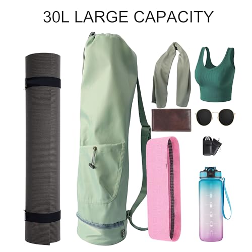 VLFit Bolsa grande para esterilla de yoga con correa de transporte ajustable, bolsa de pilates con bolsillo para botellas y compartimento húmedo
