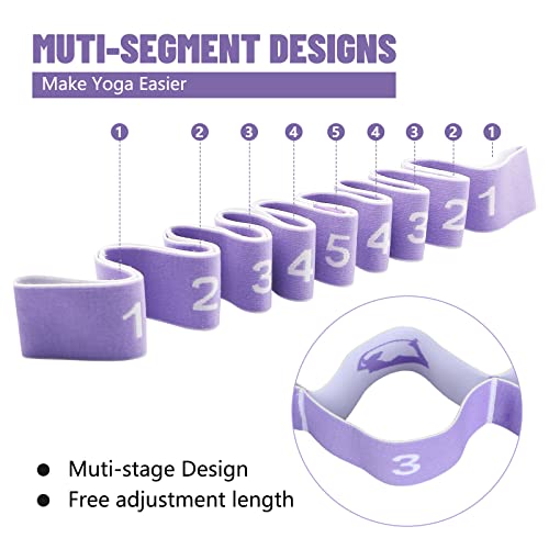 CLOPAE Bandas Elásticas de Resistencia, Cinturon Yoga, Práctica Correa Yoga, Correa de Estiramiento de Piernas con 9 Bucles, Cinta de Yoga Estiramiento para Fitness, Pilates