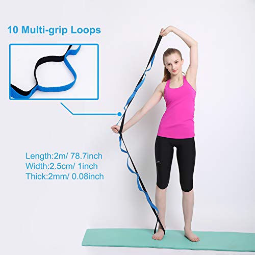 Estírese de manera segura y efectiva: la correa mucho más larga facilita un estiramiento seguro y efectivo de todo el cuerpo. Perfecto para Pilates, Yoga, ballet, fisioterapia y estiramientos antes o después del entrenamiento, el calentamiento con una correa de estiramiento ayuda a prevenir lesiones, ideal para bailarines y atletas.
