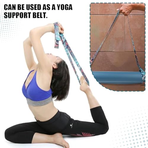 Funciones diversificadas, la correa de la estera de yoga no solo puede fijar la estera de yoga, sino que también se puede usar como una banda elástica, brindando fitness multifuncional, deportes, entrenamiento, estiramiento, pilates y otras experiencias, reduciendo la presión del hombro.