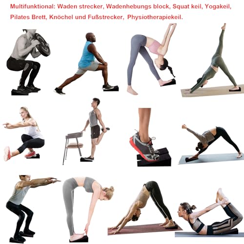Juego de 2 cuñas para pantorrillas, cuñas de sentadillas, cuñas de rodilla, estiramiento de piernas, bloques de yoga, reposapiés para estirar músculos y fascias, cuña de movilización para sentadillas