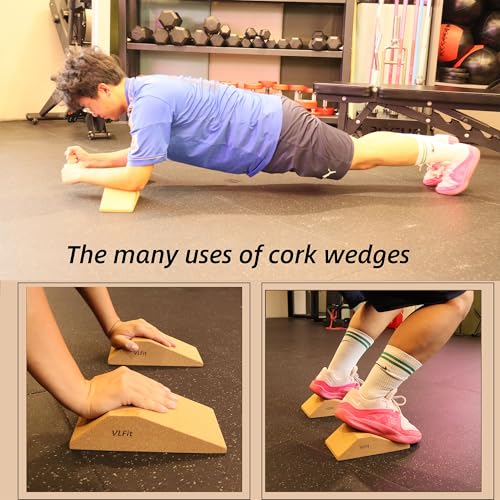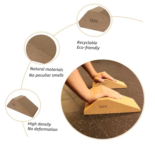 VLFit Bloques de CORCHO para sentadillas, paquete de 2, rampa profesional antideslizante para sentadillas elevadas en el talón, estiramiento, plataforma de elevación de pantorrillas, entrenador