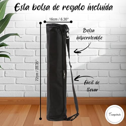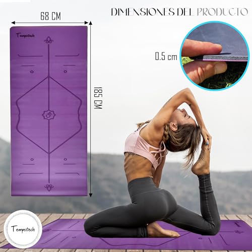 Tempotech Original ® Esterilla Yoga y Pilates | Caucho Alta Densidad |1,85 x 0,68 x 0,05 | Bolsa Transporte | Antideslizante En Seco Y Húmedo | Esterilla Marcas de Alineación | Asanas Perfectas