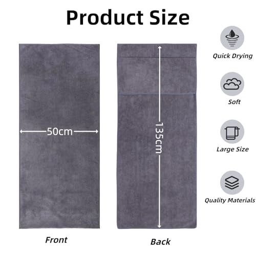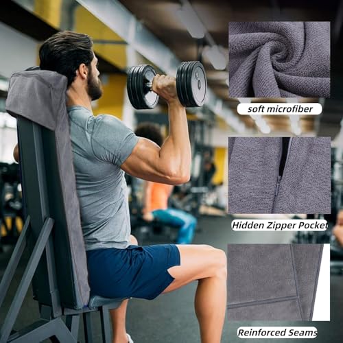 Bacxzomx Toalla Gimnasio, 135x50cm Toalla Gym con Bolsillo de Cremallera, Toalla Deporte Gimnasio de Microfibra, Secado Rápido, Toalla Gimnasio para Camping, Yoga y Sauna