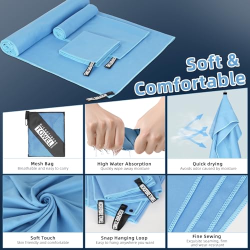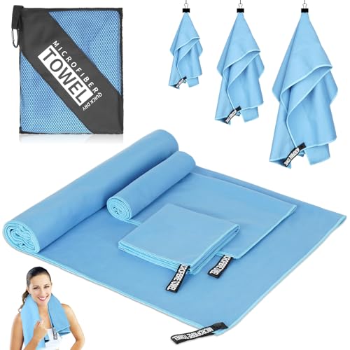【Juego de 3 Toallas de Microfibra】Recibirás 3 toallas de microfibra azules de diferentes tamaños: 180 x 80cm – toalla de baño grande, 80 x 40 cm + 30 x 60 cm – toalla manos pequeña. El toalla microfibra juego de 3 es adecuado para hombres, mujeres y niños
